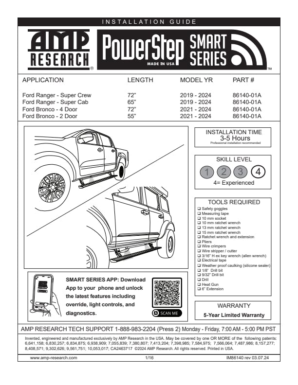 PowerStep SmartSeries Running Board fits 21-24 Ford Bronco (Does NOT fit Raptor Model), 19-23 Ford Ranger