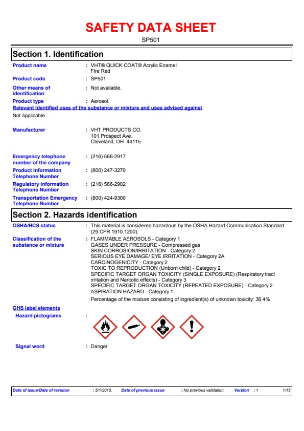 VHT(R) Quick Coat(TM) Enamel is a premium quality coating, which provides extra hide and durability for interior or exterior applications. This tough and durable coating prevents rust and corrosion on properly prepared surfaces, is fast drying, lead free and ozone safe. VHT(R) Quick Coat(TM) Enamel provides a rich weather resistant gloss finish to wood, metal, sealed plaster and masonry surfaces.